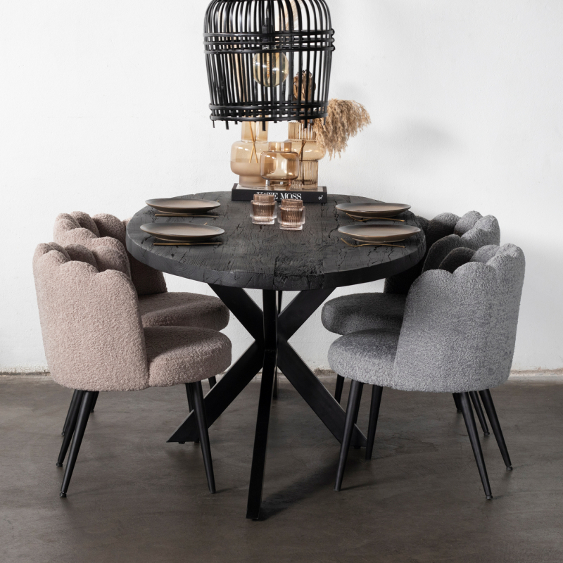 Materiaal: Het tafelblad is gemaakt van mangohout, terwijl het onderstel van ijzer is. Deze combinatie zorgt voor een stevige constructie en een unieke uitstraling.