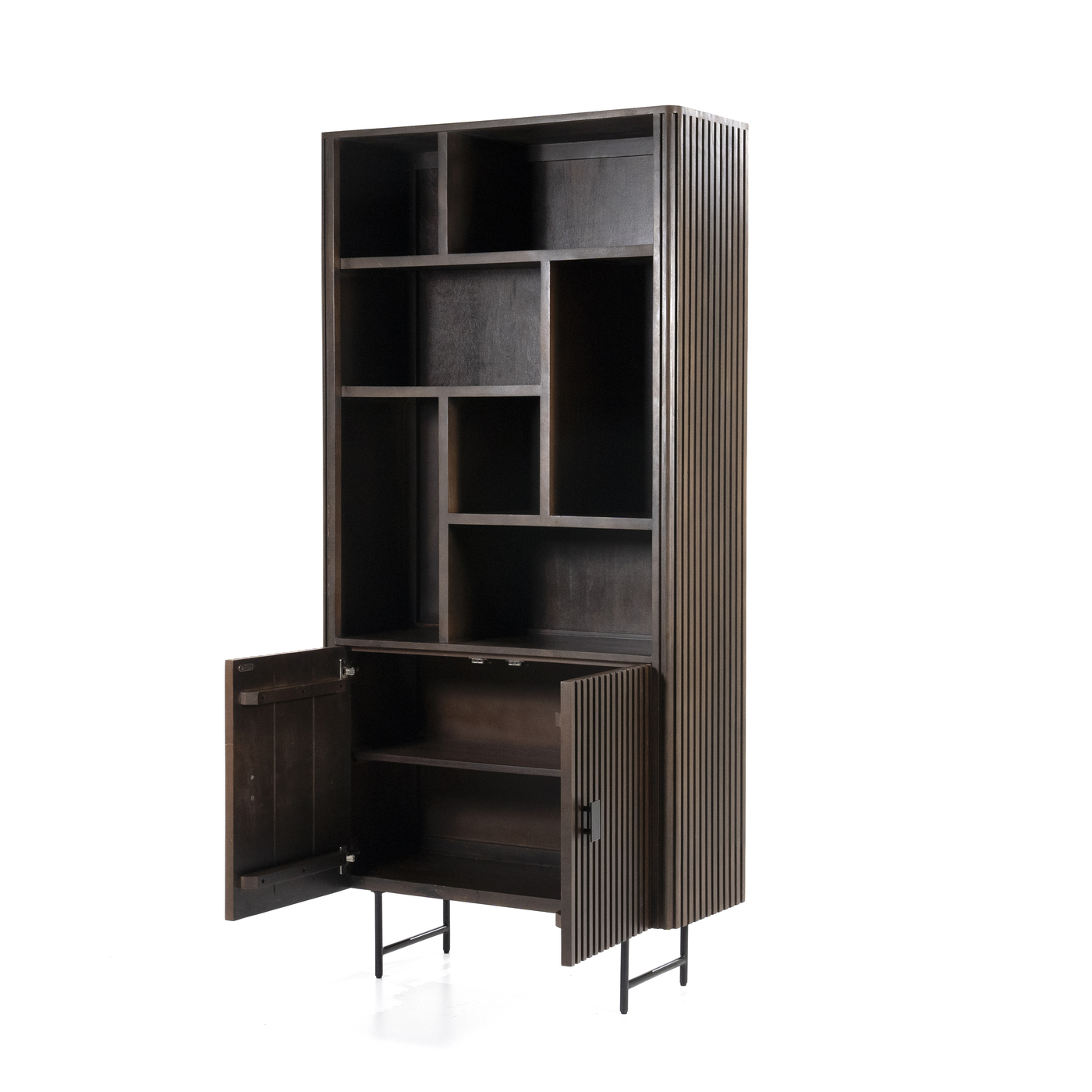 Materiaal: De boekenkast is gemaakt van mangohout en metaal, wat zorgt voor een duurzame en robuuste constructie. Deze materialencombinatie geeft het meubelstuk een unieke en moderne uitstraling.
